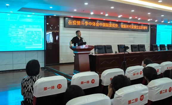 為加強學(xué)院思想政治工作,著力培養(yǎng)擔(dān)當(dāng)民族復(fù)興大任的時代新人,幫助青年學(xué)生從情感認(rèn)知升華為理性思考,進(jìn)一步增強打贏疫情防控阻擊戰(zhàn)的信心決心,2020年5月8日上午,學(xué)院黨委副書記、院長邱國援為首批返回校園的學(xué)生上了一堂以“在疫情斗爭中體會中國制度優(yōu)勢,做新時代愛國立志好青年”為主題的思政課。
