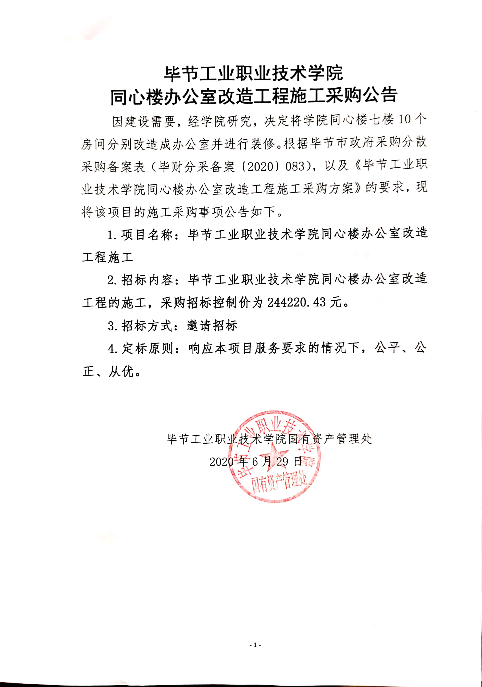 畢節(jié)工業(yè)職業(yè)技術(shù)學(xué)院同心樓辦公室改造工程施工采購(gòu)公告