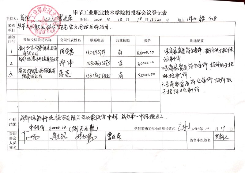 畢節(jié)工業(yè)職業(yè)技術(shù)學(xué)院官方網(wǎng)站中標(biāo)公告