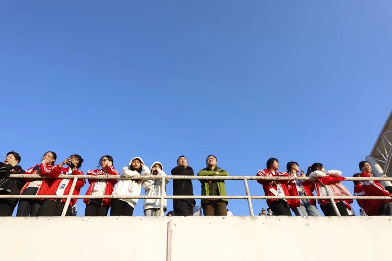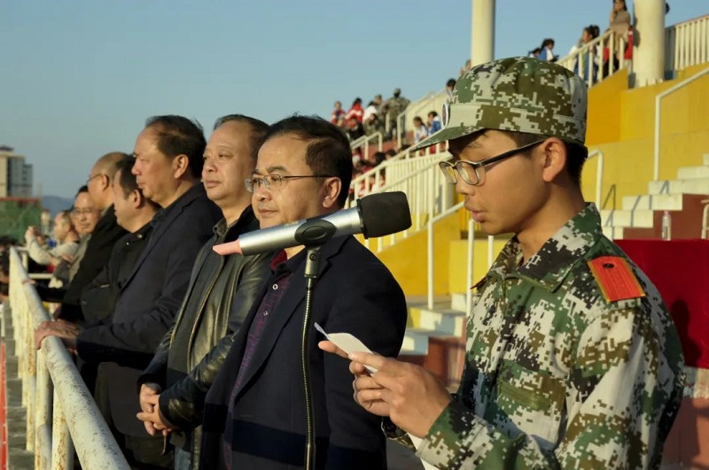 各系部方陣順序經(jīng)過觀禮臺(tái)接受檢閱