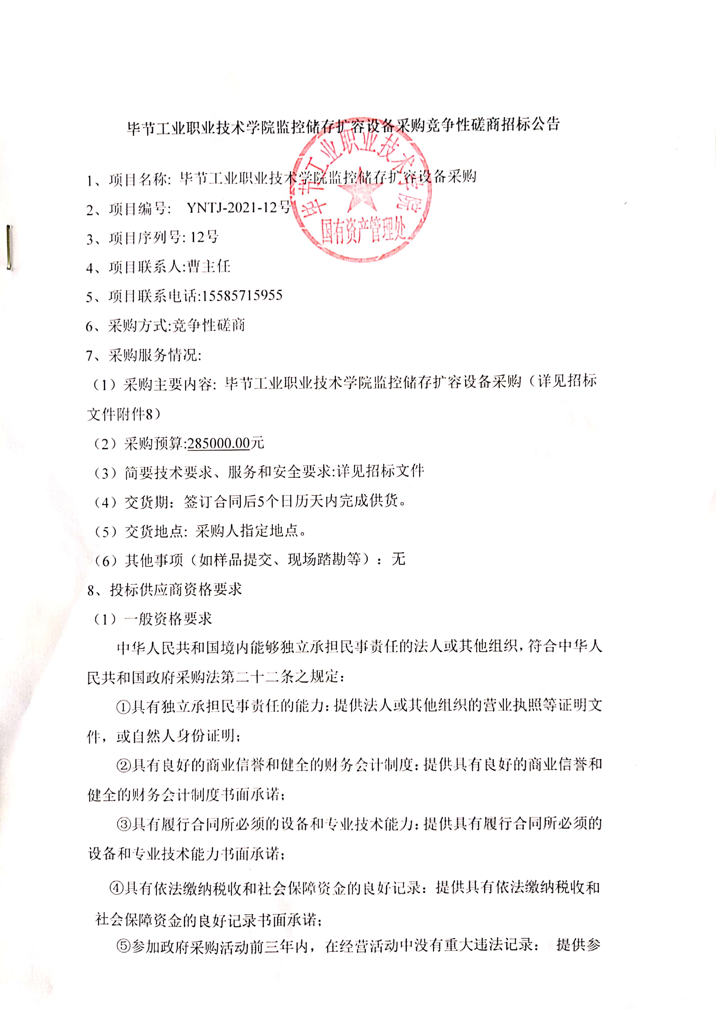 畢節(jié)工業(yè)職業(yè)技術(shù)學(xué)院監(jiān)控儲(chǔ)存擴(kuò)容設(shè)備采購(gòu)競(jìng)爭(zhēng)性磋商招標(biāo)公告
