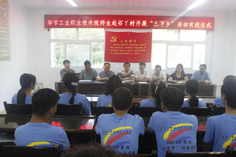 為落實(shí)團(tuán)中央《關(guān)于開展2021年全國大中專學(xué)生志愿者暑期文化科技衛(wèi)生“三下鄉(xiāng)”社會(huì)實(shí)踐活動(dòng)的通知》要求,引領(lǐng)廣大青年學(xué)生踴躍挑起民族復(fù)興的重?fù)?dān),切實(shí)在助力鄉(xiāng)村振興的偉大實(shí)踐中接受思政教育、增長智慧才干、提升實(shí)踐能力。2021年7月14日,畢節(jié)工業(yè)職業(yè)技術(shù)學(xué)院組建了“三下鄉(xiāng)”社會(huì)實(shí)踐志愿隊(duì)伍前往百里杜鵑管理區(qū)黃泥鎮(zhèn)槽門村、小坡村、石丫村三個(gè)村開展為期十天的社會(huì)實(shí)踐活動(dòng)。