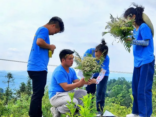 ▲實踐隊員親手采集鮮花,哀思革命先烈