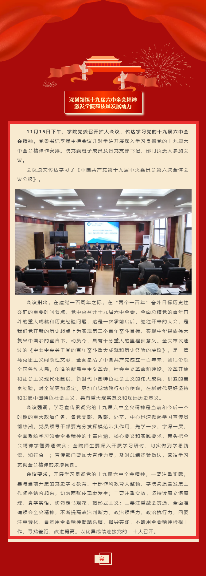 中共畢節(jié)工業(yè)職業(yè)技術(shù)學(xué)院委員會召開擴(kuò)大會議,傳達(dá)學(xué)習(xí)黨的十九屆六中全會精神