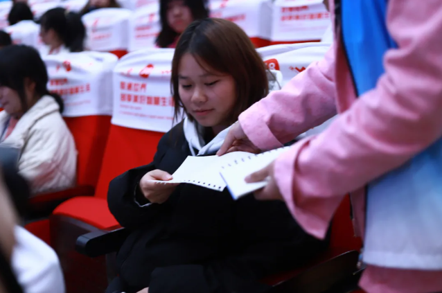 講座在身體放松的正念冥想導語中開始,與會同學體驗在緩慢而柔和的音樂中舒展,在一呼一吸中放松的感受,學著去關(guān)注自己的呼吸和身體。隨后,黃文碧講訴《狐貍的故事》,讓同學們了解認知、情緒和行為在生活中相互影響的關(guān)系。 講座過程中,黃文碧以“悄悄話搬運工”活動促進與學生互動交流,既了解學生們關(guān)于戀愛這個話題的看法,也活躍講座氣氛。 本次講座,黃文碧主要從認識青春期的特點、了解戀愛情感、樹立正確的戀愛觀三個方面向?qū)W生進行闡述,通過通俗易懂的語言、生動鮮活的案例,與同學們交流如何更好地認識自己,了解青春期生理和心理特點,了解自我保護的知識,如何理性處理兩性之間發(fā)生的情感糾紛,并與同學們分析如何樹立正確的戀愛觀。 通過講座,幫助同學們更好的認識和了解自己,增強自我保護意識,提升自身的心理健康素質(zhì)。用積極心態(tài)面對成長中的困惑,努力成長為身心健全、適應(yīng)時代發(fā)展的新時代有為青年。