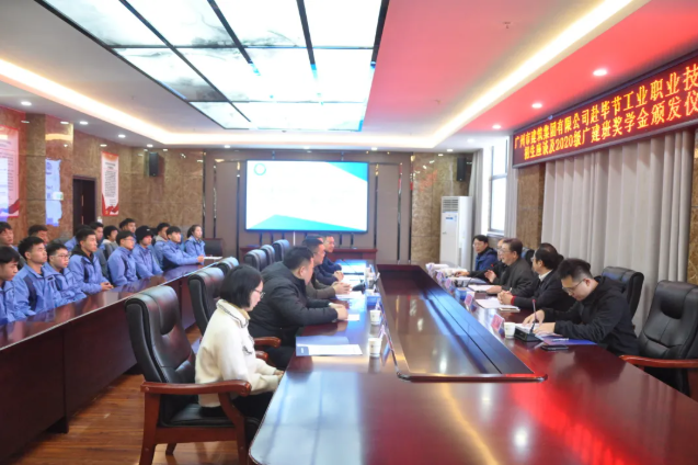 12月9日,畢節(jié)工業(yè)職業(yè)技術(shù)學(xué)院“廣建班”獎學(xué)金頒發(fā)儀式在我院舉行。廣州市建筑集團(tuán)教育中心主任鄺欣慰、廣州市建筑集團(tuán)黨校校長沈海岑、廣州建筑產(chǎn)業(yè)研究院有限公司研發(fā)中心副主任任樂民一行赴我院為學(xué)生頒發(fā)獎學(xué)金。學(xué)院黨委委員、副院長吳家文,土木工程系主任唐信東及系部相關(guān)處室負(fù)責(zé)人參加儀式。頒獎儀式由唐信東主持。