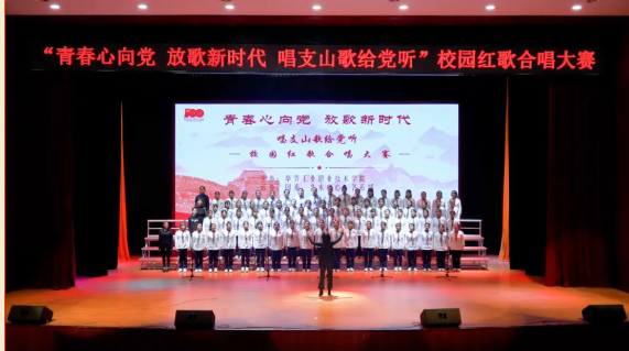 為賡續(xù)紅色精神,傳唱紅色經典,激發(fā)學生愛國愛黨熱情。12月15日,畢節(jié)工業(yè)職業(yè)技術學院在會議中心隆重舉辦“青春心向黨 放歌新時代”校園紅歌合唱大賽。 伴隨著主持人熱情洋溢的開場,一首《唱支山歌給黨聽》拉開了大賽的序幕,來自各系部的12支參賽隊伍依次精彩登場。一首首充滿正氣和豪情的紅色歌曲在賽場上飄蕩,《歌唱祖國》《我和我的祖國》《我愛你中國》《保衛(wèi)黃河》等紅色經典歌曲,讓在場觀眾重溫了在黨的領導下中華兒女共同建設偉大祖國的光輝歷程,唱出了參賽選手對祖國的無限崇敬、對黨的無限忠誠、對人民的無限熱愛。觀眾席上頻頻響起熱烈的掌聲。 經過激烈的角逐和評委打分,最終,社會服務系參賽隊以充滿強烈愛黨愛國情懷的優(yōu)美歌聲打動了在場所有觀眾并奪得比賽冠軍,信息工程系參賽隊以優(yōu)異成績榮獲二等獎,土木工程系參賽隊、機電汽車工程系參賽隊榮獲三等獎。學院領導現(xiàn)場為獲獎隊伍頒發(fā)了獎牌。 同學們飽含深情地唱起紅歌,回顧了黨的奮斗歷史,謳歌了黨的光輝業(yè)績,表達了繼承紅色精神、堅定理想信念和愛黨、愛國、愛校的真摯情感,共同用詩歌歌頌了中國共產黨一心一意為人民謀求幸福,為中華民族謀復興的偉大精神。 以音樂感悟黨史,用歌聲銘記初心。紅歌大賽唱響百年輝煌,凝聚奮進力量,工職院師生將不忘初心,肩負起黨和人民的重托,在振興中華的道路上闊步前進,以優(yōu)異成績迎接黨的二十大勝利召開!