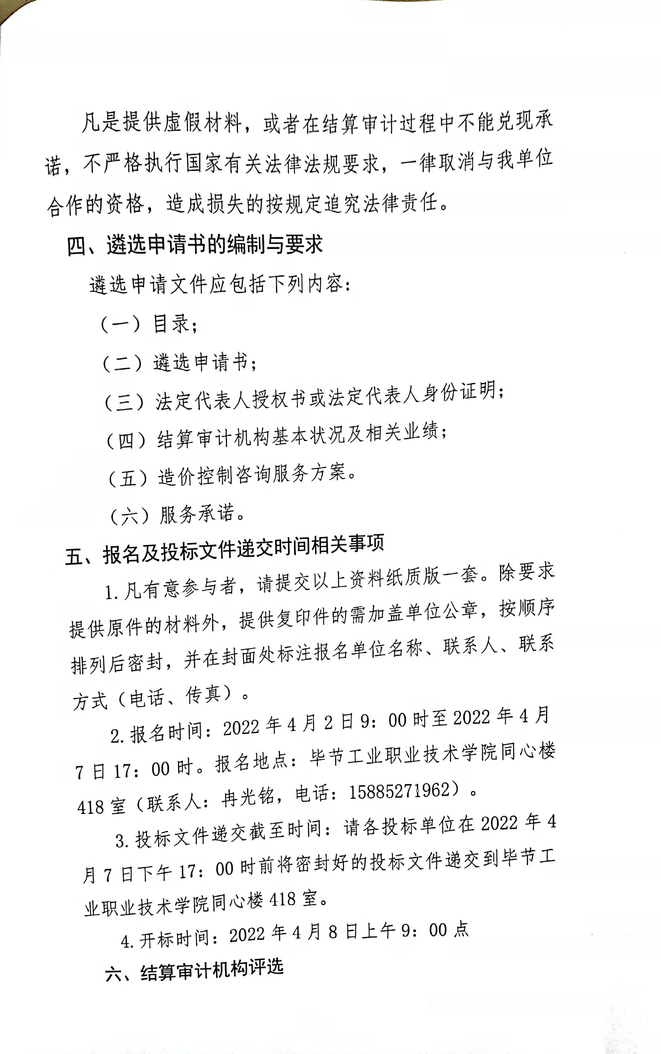 畢節(jié)工業(yè)職業(yè)技術學院關于遴選工程類項目結算審計服務機構的公告