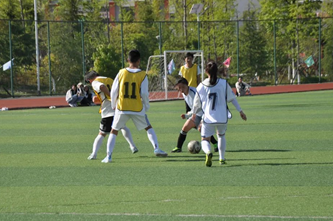 一個(gè)個(gè)華麗的躲閃、漂亮的鏟球、迅猛的突擊,牽動(dòng)著在場的觀眾們的心,不由得為之吶喊。最終,學(xué)院女足隊(duì)以0-1的比分惜敗信息工程系二隊(duì)。