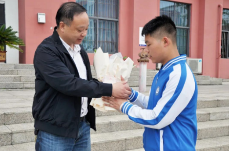(院領(lǐng)導(dǎo)為獲獎(jiǎng)師生獻(xiàn)花)