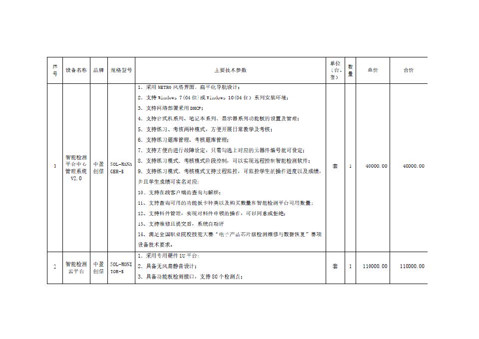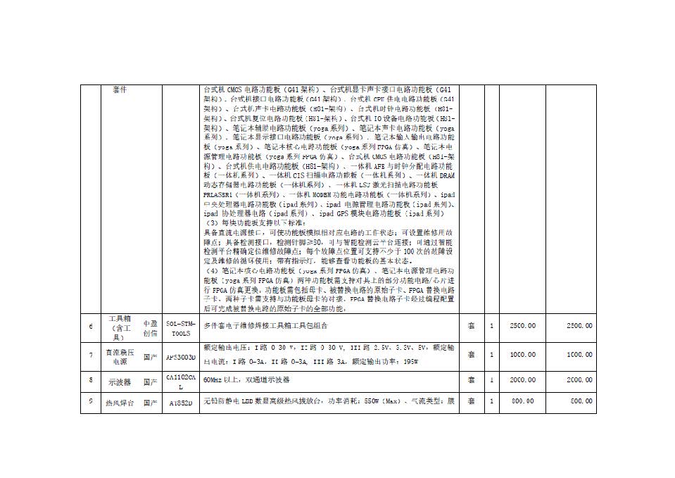 標(biāo)的名稱:計(jì)算機(jī)硬件檢測及數(shù)據(jù)恢復(fù)實(shí)訓(xùn)、技能大賽設(shè)備購置 品牌:詳見附件。 規(guī)格型號:詳見附件。 數(shù)量:詳見附件 單價(jià):詳見附件(此單價(jià)為中標(biāo)供應(yīng)商的基礎(chǔ)報(bào)價(jià)) 服務(wù)要求:按國家現(xiàn)行的相關(guān)規(guī)范、標(biāo)準(zhǔn)以及采購項(xiàng)目的實(shí)際需求20日歷天完成本項(xiàng)目的供貨及安裝等要求,符合采購人使用要求。 |
