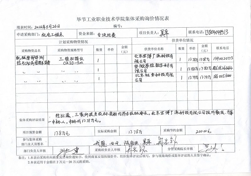 畢節(jié)工業(yè)職業(yè)技術(shù)學(xué)院集體采購詢價情況表公示