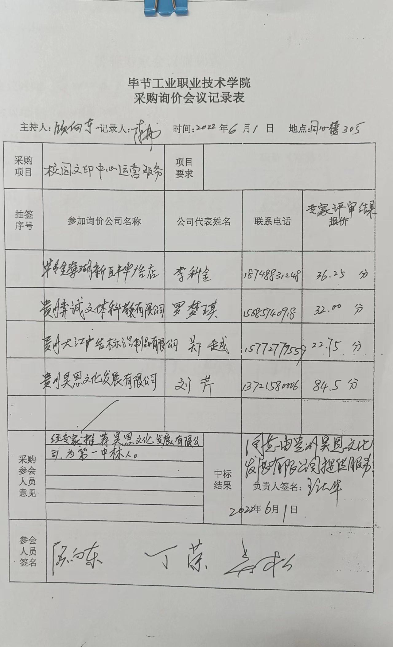 畢節(jié)工業(yè)職業(yè)技術(shù)學(xué)院采購(gòu)詢(xún)價(jià)會(huì)議記錄表公示