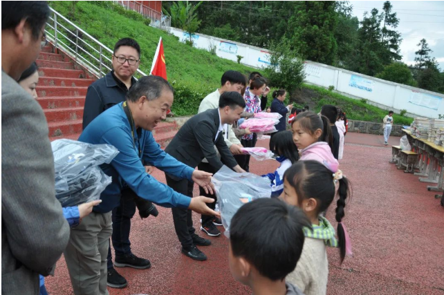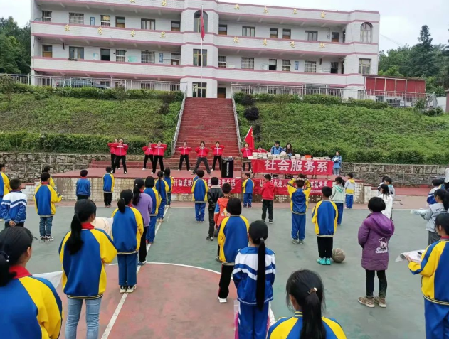 活動中,學院還為云峰小學全體師生帶去了文藝表演,活躍的氛圍點燃了他們活潑的心靈,慢慢地融合到中間穿插的各項互動游戲中來,最后連老師也不知不覺加入了活動的行列。師生們的掌聲、笑聲飄蕩在大山中的校園里,久久不息。