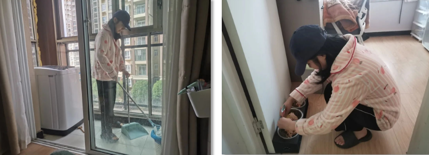 實(shí)行靜默管控以來(lái),機(jī)電工程系老師陳榮雪,每天忙碌于給在校進(jìn)行疫情防控工作的老師們收拾屋子,整理家務(wù)。掃地、澆花、倒垃圾、喂寵物,甚至是熬豬油、洗衣服……把老師們家里的一切打理得井井有條。