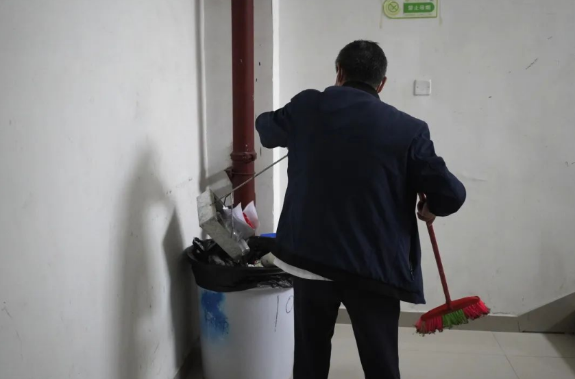 靜默管理這幾天,在畢節(jié)工業(yè)職業(yè)技術(shù)學(xué)院有一個(gè)“怪現(xiàn)象”——留在學(xué)校里面的清潔工并不多,但是校園環(huán)境一直保持著很干凈的狀態(tài),尤其是同心樓。這一來(lái)是得益于志愿者們積極參與到衛(wèi)生清潔,二來(lái)是有這么個(gè)“老頭”在默默奉獻(xiàn)著。