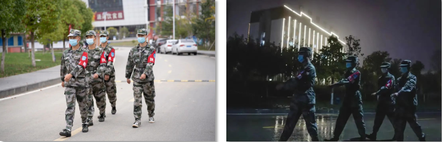 在學(xué)院實施靜默管理至今,校園內(nèi)總能見到一個個身穿迷彩服,英姿颯爽的身影,他們同一線抗疫人員站在一起,默默進(jìn)行著日常巡邏、定點(diǎn)值守、秩序維護(hù)、隱患排查等工作,成為了織密織牢學(xué)院疫情防控網(wǎng)的重要一環(huán)。