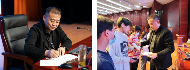 “祝你生日快樂……”隨著背景音樂響起,過生日的同學(xué)們帶著驚喜的笑容走上講臺,享受著這份專屬的溫馨,現(xiàn)場氣氛熱烈,在場同學(xué)們熱情地送上陣陣掌聲與歡呼?!安回撋厝A、砥礪前行,做有理想、有信念、有擔(dān)當(dāng)?shù)男聲r代高素質(zhì)技能人才”“奮發(fā)前行,做與眾不同的畢節(jié)工職院技能型新青年”……一句句寫在明信片上的青春寄語既是院長對新同學(xué)的期待,更是院長對新同學(xué)特別生日的別樣祝福。 在16位同學(xué)的生日“大禮包”中,一張親筆簽名的青春寄語明信片成為最有意義的“生日祝福”。明信片的正面展現(xiàn)了校園內(nèi)一年四季的美景與青春芳華,表達了學(xué)院對新同學(xué)的歡迎與祝福。而在明信片的背面,是一句句手寫的青春寄語與院長的親筆簽名,將思政融于校園生活,用生動具體的祝福引導(dǎo)新同學(xué)扣好人生的“第一??圩印保龑?dǎo)同學(xué)們珍惜時光、不負韶華、不負青春。這場別樣的“開學(xué)第一課”,讓同學(xué)們剛進入學(xué)校就感受到了畢節(jié)工職院這個大家庭的溫暖。 機電工程系學(xué)生高安會說:“今天是一個特別的日子,我19歲了,在沒有家人的陪伴下過生日,心里未免有些許失落,但在“開學(xué)第一課”看到我跟其他同學(xué)的姓名出現(xiàn)在會場的屏幕上,緊接著邱院長和同學(xué)為我們送上生日的祝福,真是既驚喜又感動,對我來說這是19年以來最為難忘的一次生日。作為一名大學(xué)生,我會時刻提醒自己,珍惜在大學(xué)生活的每一分每一秒,不讓時光虛度?!?/span> 信息工程學(xué)生廖英杰說:“報到當(dāng)天就真切地感受到了老師、同學(xué)們的熱情,在今天這個特別的日子,我還收到了學(xué)校領(lǐng)導(dǎo)親手寫的明信片,這份入學(xué)‘禮物’讓我們特別高興,也感到特別溫馨?!?/p> 土木工程系同學(xué)歐宇鵬說:“今天收到的禮物對我來說有著很特別的意義。里面飽含著學(xué)校和院長對我們的期望,我一定會努力學(xué)習(xí)、不斷提升自己的能力,發(fā)揮自己的價值,做一個對社會有用的人?!?/p>
