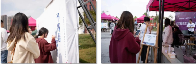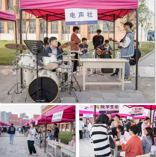 11月7日,學院開展了為期一天的社團招新活動。穿梭在各個社團之間,你會看到精妙絕倫的攝影作品、栩栩如生的繪畫和互相切磋棋藝的同學們;“是的我看見到處是陽光,快樂在校園上空飄揚”,聽!這是電聲社傳來的動聽歌聲……各種各樣吸引人的社團讓現場的小萌新們心動不已。 (社團招新現場) 社團招新現場如火如荼,大家都樂此不疲,充滿了歡聲笑語。為了讓快樂加倍,讓歡笑加倍,學院還為大家準備了黨的二十大答題闖關、新生才藝展示、予青春以夢想青春寄語等豐富多彩的現場活動。 ( 二十大答題闖關、青春寄語活動 ) ( 新生才藝展示活動 ) 光陰似箭,在最后一個才藝展示節(jié)目結束的歡呼聲中,學院的社團招新活動完美落幕,相信大家也都找到了自己心儀的社團,在以后的時間里,相信大家都能在自己的社團學到知識,提高自身的能力。 (社團風采) 一千句招新文案,都不及你的出現。在未來的日子里,期待能與大家一同前行,成就多彩人生,譜寫屬于我們的青春華章。也祝大家在未來三年都擁有一個豐富多彩的大學生活!
