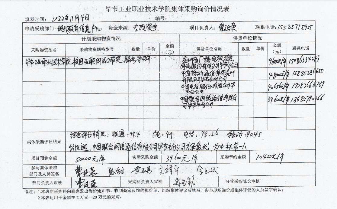 畢節(jié)工業(yè)職業(yè)技術(shù)學(xué)院校園互聯(lián)網(wǎng)出口帶寬服務(wù)項(xiàng)目采購(gòu)-比選結(jié)果公示