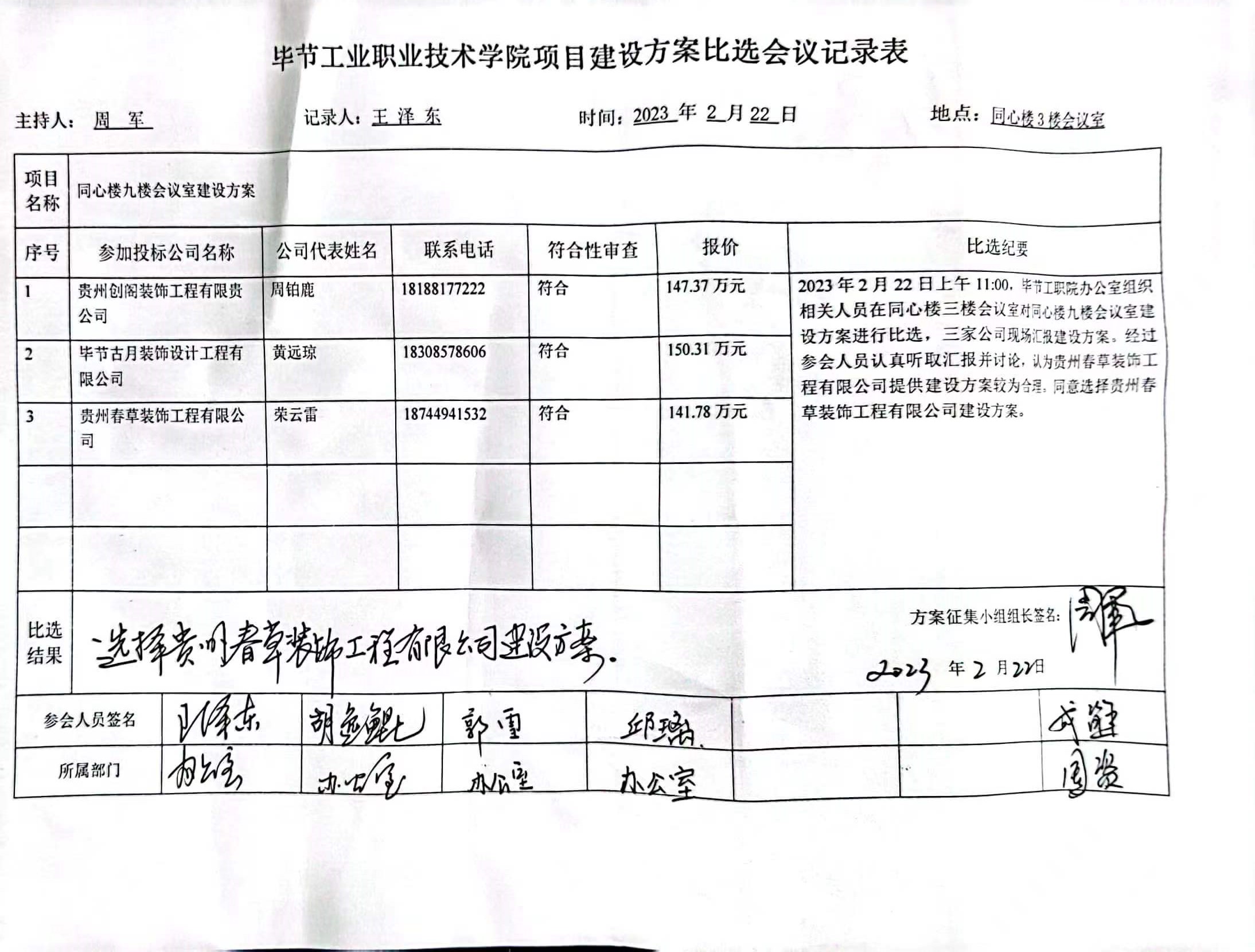 畢節(jié)工業(yè)職業(yè)技術(shù)學(xué)院同心樓九樓會(huì)議室建設(shè)方案