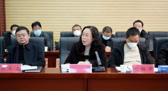畢節(jié)市中華職業(yè)教育社專(zhuān)職副主任夏青對(duì)成立畢節(jié)煤炭產(chǎn)教融合聯(lián)盟作指導(dǎo)講話。