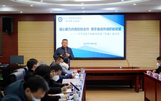 2022年12月16日,畢節(jié)煤炭產(chǎn)教融合聯(lián)盟(籌備)座談會(huì)在畢節(jié)工業(yè)職業(yè)技術(shù)學(xué)院順利召開(kāi),各指導(dǎo)單位、參會(huì)院校、企業(yè)就組建聯(lián)盟事宜作了充分的交流探討。會(huì)議由畢節(jié)市教育局黨組成員、副局長(zhǎng)何友國(guó)主持,畢節(jié)工業(yè)職業(yè)技術(shù)學(xué)院黨委副書(shū)記、院長(zhǎng)邱國(guó)援,畢節(jié)市能源局副局長(zhǎng)廖幫貴,畢節(jié)市中華職業(yè)教育社專(zhuān)職副主任夏青,畢節(jié)市教育局職成教科科長(zhǎng)阮友恒,重慶煤炭科學(xué)研究院西南分院副院長(zhǎng)黃長(zhǎng)國(guó),貴州工程應(yīng)用技術(shù)學(xué)院礦業(yè)學(xué)院院長(zhǎng)劉吉波及畢節(jié)市各中職學(xué)校、煤炭行業(yè)相關(guān)企業(yè)代表20余人參加會(huì)議。