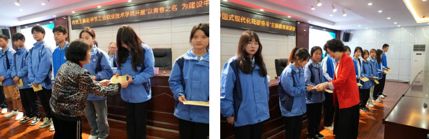 關(guān)工委領(lǐng)導(dǎo)一行實(shí)地考察調(diào)研了校園環(huán)境、文化建設(shè)、校企合作實(shí)訓(xùn)基地、心理健康教育與咨詢中心并詳細(xì)了解了學(xué)院辦學(xué)情況,對(duì)學(xué)院現(xiàn)階段各項(xiàng)工作取得的成效給予了充分肯定。 宣講會(huì)上,潘軍偉以“以青春之名,為建設(shè)中國式現(xiàn)代化砥礪奮斗”為題,從“什么是中國式現(xiàn)代化”、“中國式現(xiàn)代化理論走過的歷程”、“中國式現(xiàn)代化關(guān)鍵是什么”、“如何推進(jìn)中國式現(xiàn)代化”、“以青春之名,為建設(shè)中國式現(xiàn)代化砥礪奮斗”五個(gè)方面,帶領(lǐng)工職院師生從歷史發(fā)展脈絡(luò)的角度出發(fā),全面回顧了近代以來中華民族艱辛的探索和復(fù)興之路。深刻闡釋了中國式現(xiàn)代化是中國共產(chǎn)黨和中國人民長期實(shí)踐探索的成果,是對(duì)中國特色社會(huì)主義道路的繼承與發(fā)展,拓展了發(fā)展中國家走向現(xiàn)代化的途徑,指明了構(gòu)建人類命運(yùn)共同體發(fā)展方向。講座具有很強(qiáng)的理論性、針對(duì)性和指導(dǎo)性,對(duì)與會(huì)師生學(xué)習(xí)理解中國式現(xiàn)代化,進(jìn)一步堅(jiān)定政治立場(chǎng)、樹立正確的人生觀價(jià)值觀、勇?lián)褡鍙?fù)興重任具有深刻的啟發(fā)和引導(dǎo)意義。 潘軍偉強(qiáng)調(diào),中國式現(xiàn)代化為廣大青年提供了廣闊的舞臺(tái),新時(shí)代技能青年要堅(jiān)持黨的領(lǐng)導(dǎo),牢記習(xí)近平總書記的殷切囑托,傳承“五四”精神,既要有遠(yuǎn)大的理想和抱負(fù),又要有腳踏實(shí)地的實(shí)干精神。要認(rèn)真學(xué)習(xí)專業(yè)技能,練就過硬的本領(lǐng)、強(qiáng)健的體魄,積極參加優(yōu)秀美育、勞動(dòng)教育活動(dòng),以時(shí)不我待、強(qiáng)國有我、只爭(zhēng)朝夕的緊迫感,為建設(shè)社會(huì)主義現(xiàn)代化強(qiáng)國砥礪奮斗,書寫精彩人生。 講座結(jié)束后,市關(guān)工委領(lǐng)導(dǎo)周長琦、杜娟為學(xué)院20名家庭貧困學(xué)生發(fā)放慰問金,鼓勵(lì)他們努力學(xué)習(xí),早日成為黨和國家需要的技能型人才。