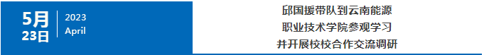 5月23日,學(xué)院黨委副書記、院長邱國援,黨委委員、副院長吳家文一行到云南能源職業(yè)技術(shù)學(xué)院參觀學(xué)習(xí)并開展校校合作交流調(diào)研,共同探討實訓(xùn)基地建設(shè)、專業(yè)課程設(shè)置、產(chǎn)教融合等辦學(xué)經(jīng)驗。
