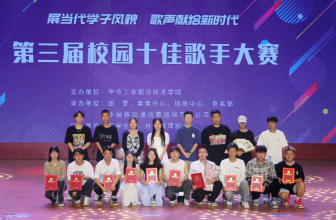 5月30日,畢節(jié)工業(yè)職業(yè)技術(shù)學(xué)院“展當(dāng)代學(xué)子風(fēng)貌 歌聲獻給新時代”第三屆校園十佳歌手大賽總決賽圓滿落幕?;顒訛槲以簬熒峁┝艘魳肺幕涣鞯钠脚_,營造了活躍、和諧的校園文化氛圍,推動了我院精神文明建設(shè),展示了我院學(xué)生積極向上的健康風(fēng)貌。