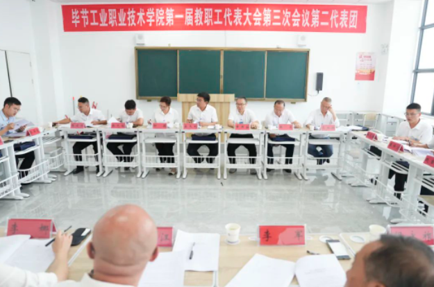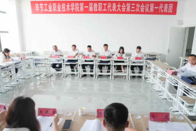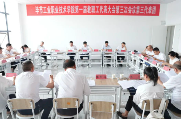 大會(huì)還聽(tīng)取了《畢節(jié)工業(yè)職業(yè)技術(shù)學(xué)院2022年財(cái)務(wù)預(yù)算執(zhí)行情況和2023年財(cái)務(wù)預(yù)算情況報(bào)告》《畢節(jié)工業(yè)職業(yè)技術(shù)學(xué)院工會(huì)工作報(bào)告》《畢節(jié)工業(yè)職業(yè)技術(shù)學(xué)院第一屆第二次教職工代表大會(huì)提案落實(shí)情況及第一屆第三次教職工代表大會(huì)提案征情況報(bào)告》,審議了《畢節(jié)工業(yè)職業(yè)技術(shù)學(xué)院專(zhuān)業(yè)技術(shù)職務(wù)評(píng)聘管理暫行辦法》《畢節(jié)工業(yè)職業(yè)技術(shù)學(xué)院年度部門(mén)綜合考核實(shí)施方案》。期間,三個(gè)代表團(tuán)與會(huì)代表紛紛以高度的責(zé)任感和飽滿的主人翁精神,緊緊圍繞中心工作,對(duì)大會(huì)相關(guān)《報(bào)告》《辦法》《方案》及相關(guān)《決議(草案)》進(jìn)行認(rèn)真討論和審議,提出修改意見(jiàn)和建議,積極為學(xué)院發(fā)展建言獻(xiàn)策。