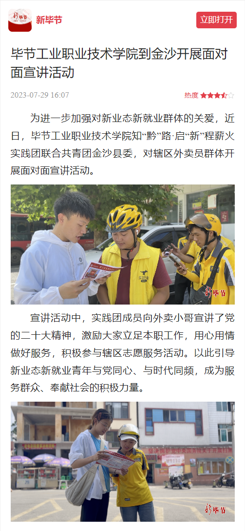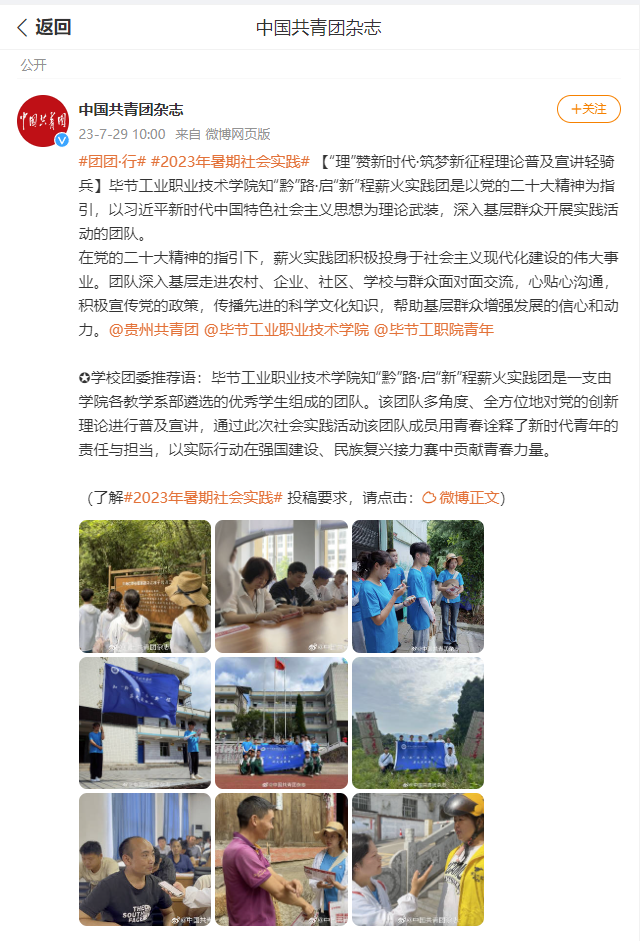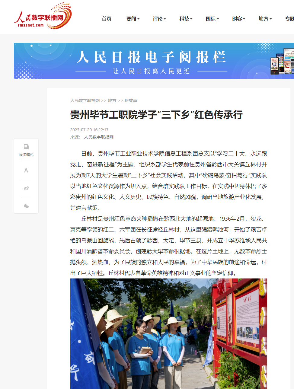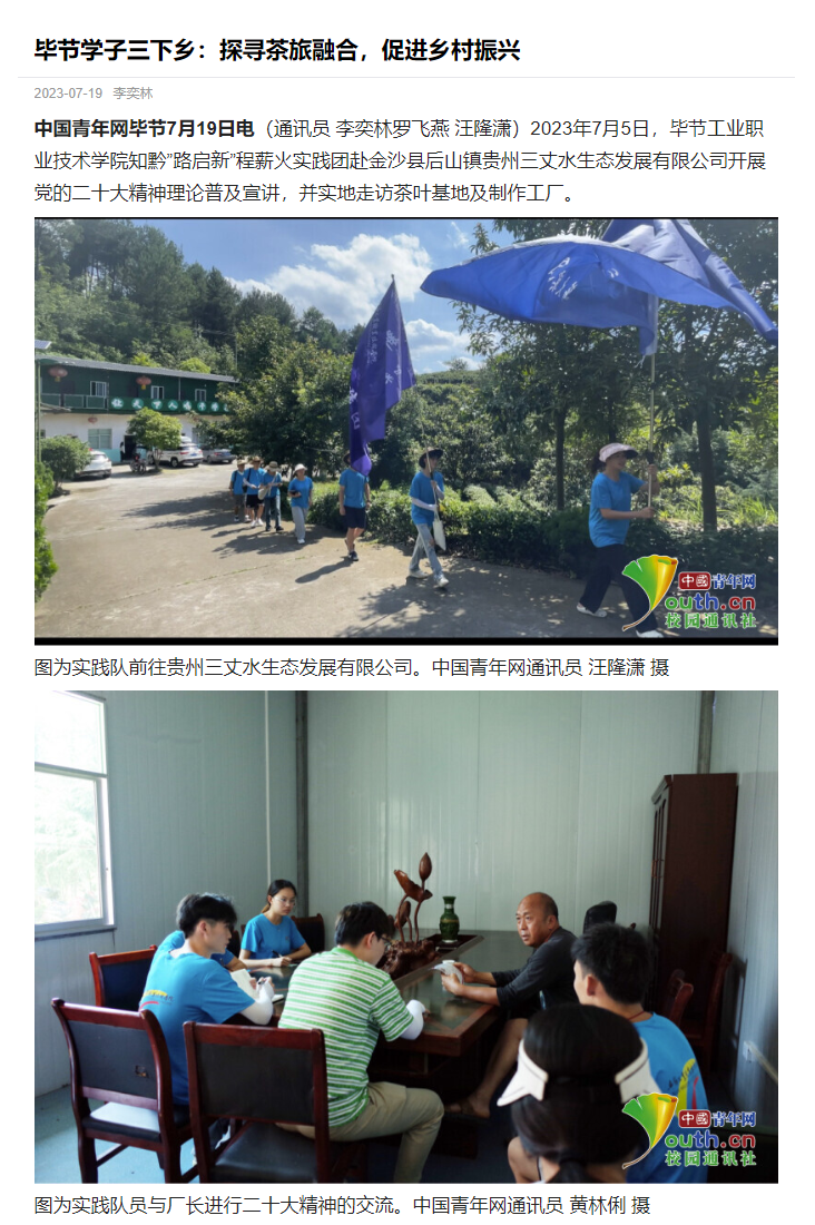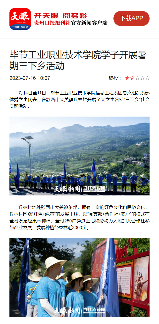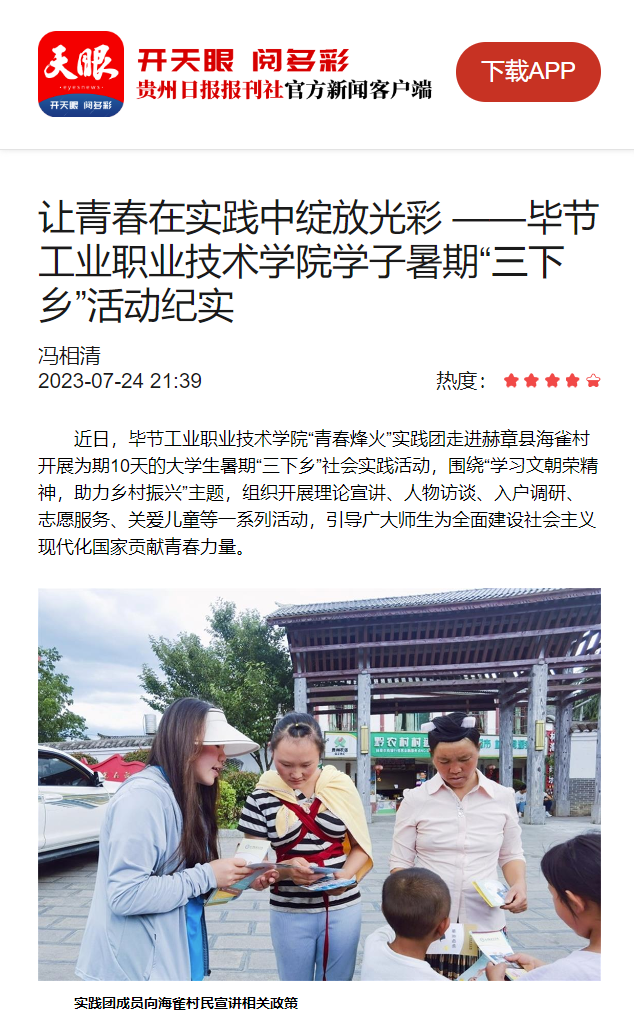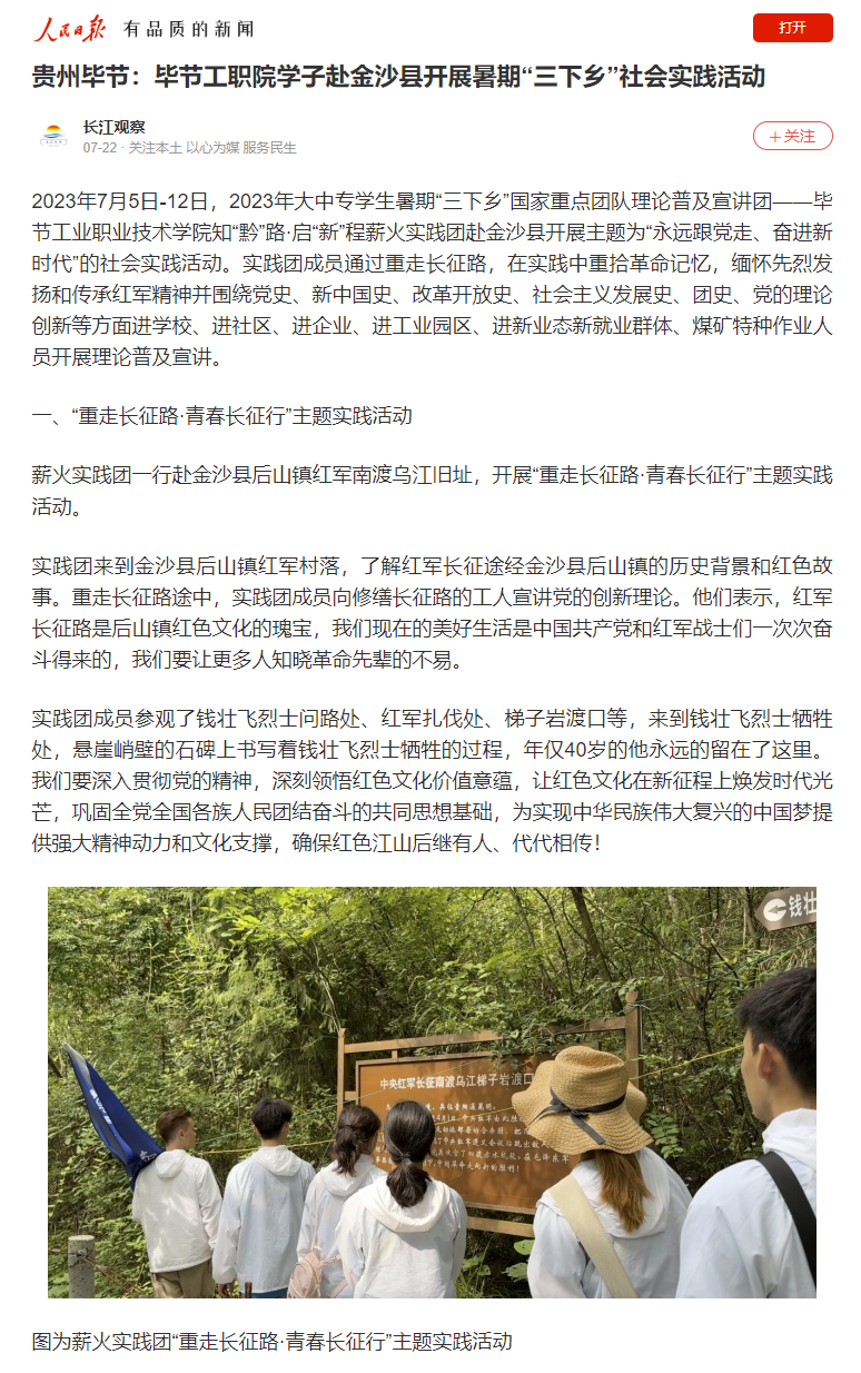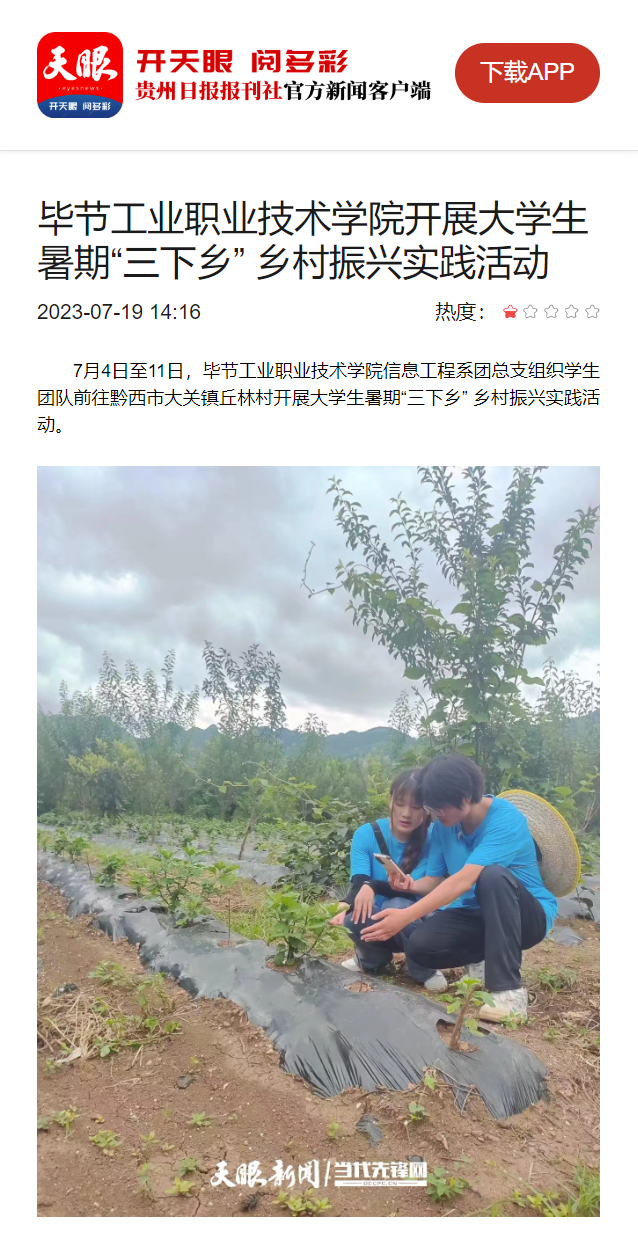 在我院今年暑期“三下鄉(xiāng)”社會實踐活動中,22支實踐隊走進基層、社區(qū)、農(nóng)村,精心開展主題鮮明、形式多樣、有內(nèi)涵、有質量的實踐活動,足跡遍布黔東南州榕江縣兩汪鄉(xiāng)、畢節(jié)市赫章縣海雀村、黔西市大關鎮(zhèn)丘林村、金沙縣后山鎮(zhèn),七星關區(qū)陰底鄉(xiāng)羅雄村、先鋒村等地,選題覆蓋了黨史學習教育、鄉(xiāng)村振興、優(yōu)秀傳統(tǒng)文化傳承、理論宣講、教育關愛、成就觀察等多個方面。自暑期“三下鄉(xiāng)”社會實踐活動啟動以來,受到多家主流媒體的廣泛關注和報道,社會實踐工作的影響力顯著增強。