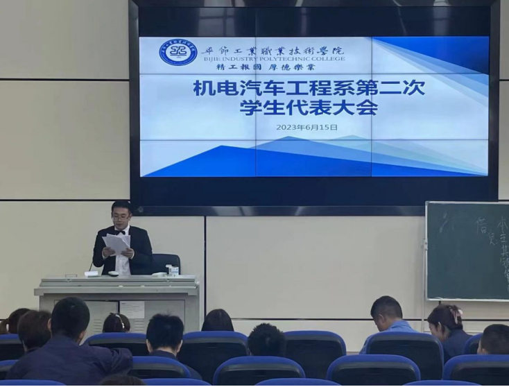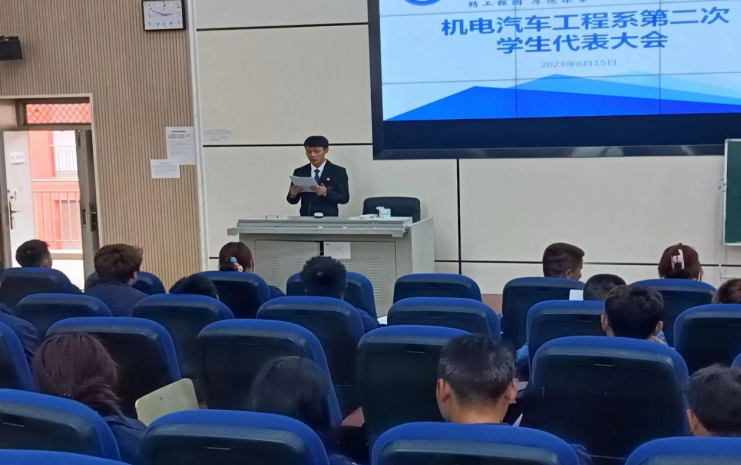 2023年6月15日,畢節(jié)工業(yè)職業(yè)技術(shù)學(xué)院機電汽車工程系第二次學(xué)生代表大會在括海學(xué)院二樓會議室召開。第一階段,到會的領(lǐng)導(dǎo)及嘉賓一同奏唱國歌,機電工程系負(fù)責(zé)人張建為大會致開幕詞,院團(tuán)委負(fù)責(zé)人伍紹平老師宣讀了團(tuán)委批復(fù),系部黨總支張禾書記宣讀黨總支批復(fù),宣讀完畢后到會領(lǐng)導(dǎo)及嘉賓進(jìn)行了合影留戀。