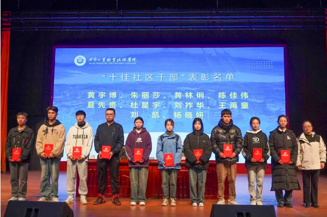 黃文碧在講話中指出,希望獲得表彰的同學以及新聘任的社區(qū)干部戒驕戒躁,提高認識,增強責任感和使命感,認真履職,確保各項工作有序開展,密切配合,勤于學習、大膽實踐,形成強大工作合力,胸懷大局意識、服務意識和奉獻意識,認真履行好學生社區(qū)管理服務工作職責,爭取再創(chuàng)佳績,為校園做出新的更大的貢獻。 (黨委委員、副院長黃文碧講話) 會上,學生工作處負責人胡永祚宣讀了《關于表彰2023年易班優(yōu)秀學生干事、優(yōu)秀部門的決定》和新一屆社區(qū)干部任命決定、大學生社區(qū)服務站聘任名單;心理健康教育與咨詢中心負責人周靜宣讀表彰2023年“十佳社區(qū)干部”,大學生社區(qū)服務站優(yōu)秀站長、部長、干事決定。 (2022-2023學年度社區(qū)管理委員會“十佳社區(qū)干部”) 此次“一站式”學生社區(qū)干部表彰及學生社區(qū)干部聘任儀式的舉行,為我院學生社區(qū)管理工作注入了新的活力,也標志著學院在學生社區(qū)建設方面邁上了新的臺階。今后,學院將進一步推進“金海學堂”學生社區(qū)建設,規(guī)范社區(qū)學生自主管理,切實增強學生社區(qū)管理服務人員的責任感與使命感,以全新的思路和行動,打造出要畢節(jié)工職院特色的學生社區(qū)品牌。