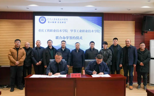 1月12日,重慶工程職業(yè)技術(shù)學(xué)院、畢節(jié)工業(yè)職業(yè)技術(shù)學(xué)院聯(lián)合辦學(xué)工作洽談會及校校合作、聯(lián)合辦學(xué)簽約儀式在我院同心樓第三會議室舉行。重慶工程職業(yè)技術(shù)學(xué)院黨委副書記、院長張進,畢節(jié)工業(yè)職業(yè)技術(shù)學(xué)院黨委書記李涌,黨委副書記、院長邱國援,黨委委員、副院長吳家文出席會議,兩校相關(guān)部門負責同志參加會議。