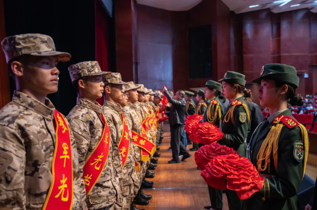 會上,李軍宣布我院2024年春季征兵新兵定兵名單。教師代表、學生代表分別發(fā)言。