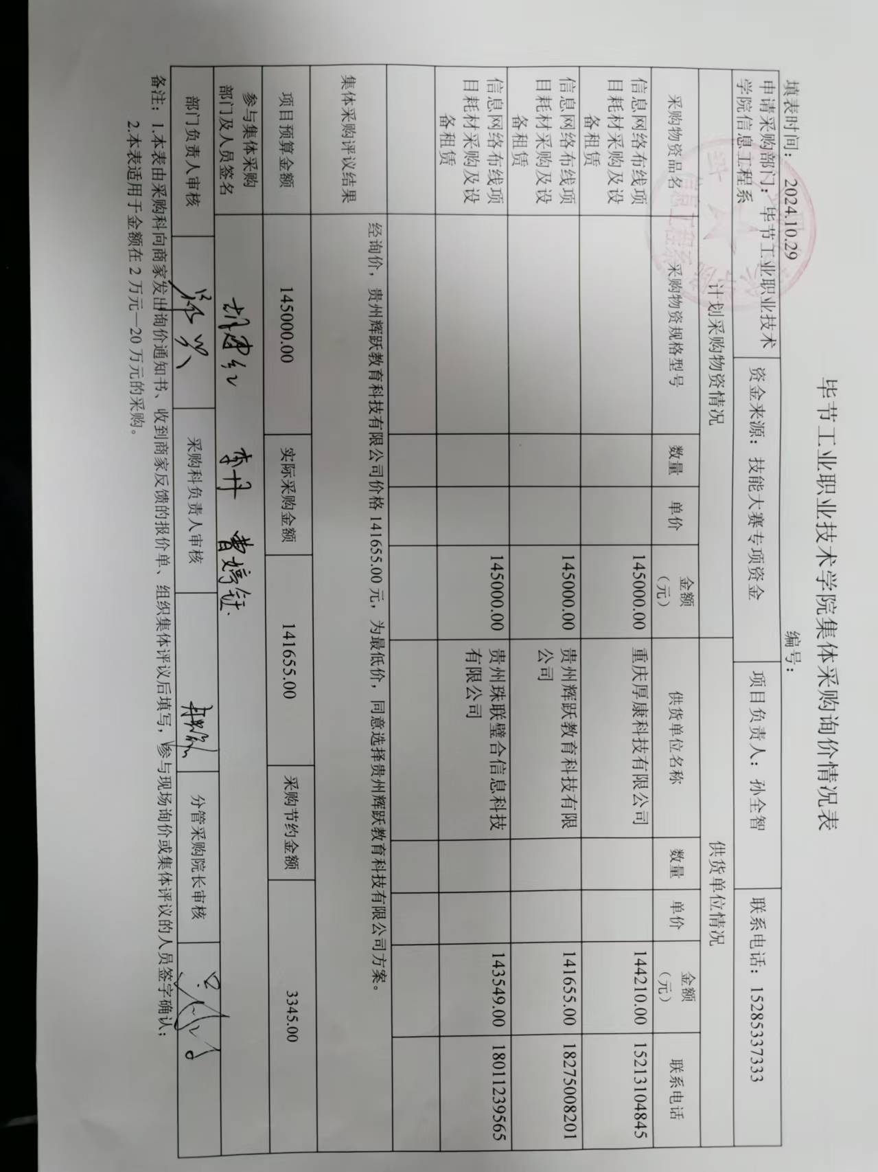 畢節(jié)工業(yè)職業(yè)技術學院信息網絡布線項目耗材采購及租賃詢價結果公示