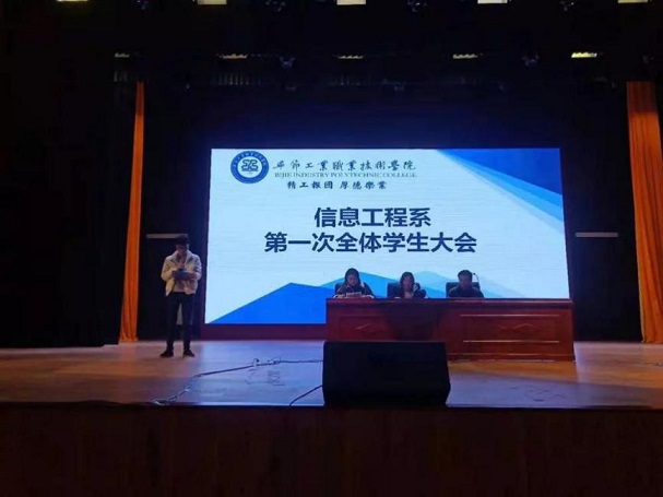 為進一步加強系部管理與建設(shè),畢節(jié)工業(yè)職業(yè)技術(shù)學(xué)院信息工程系于2019年12月19日在學(xué)院會議中心召開學(xué)生大會,到場的有信息工程系負責(zé)人黃亞男,系學(xué)生科胡蓉、潘愚老師、各班班主任及信息工程系全體學(xué)生。