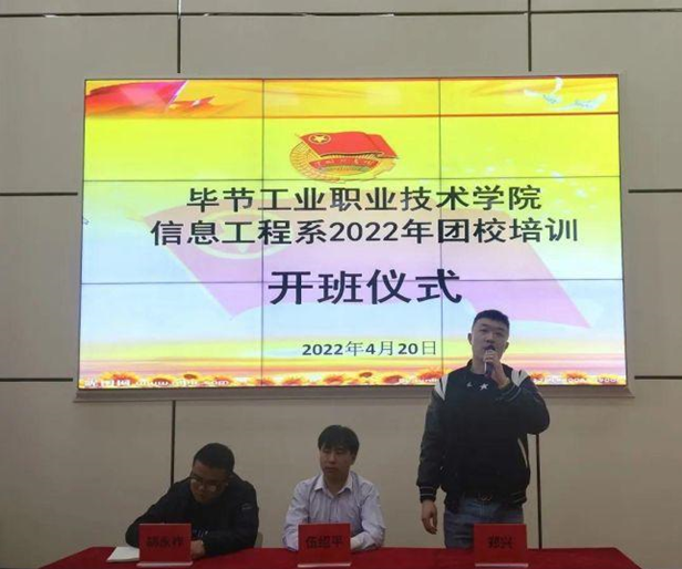 為嚴(yán)格落實(shí)中國(guó)共產(chǎn)主義青年團(tuán)團(tuán)員發(fā)展要求,深入學(xué)習(xí)團(tuán)的理論知識(shí),進(jìn)一步加強(qiáng)對(duì)入團(tuán)積極分子的教育、培養(yǎng)和考察,2022年4月20號(hào),我系于E字樓階梯教室開展團(tuán)校培訓(xùn)開班儀式, 系部團(tuán)總支羅坤老師主持開班儀式。