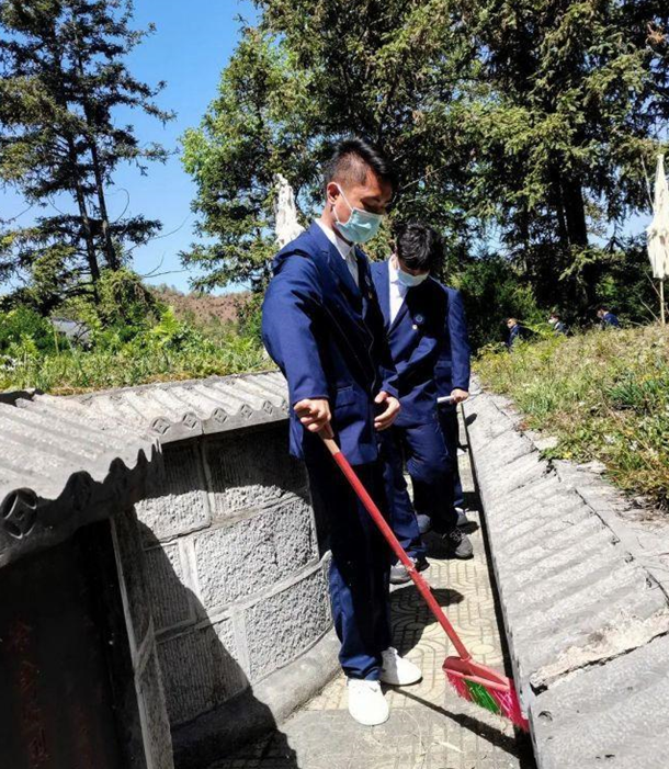 參加此次活動的同學(xué)們有序的分工,在烈士陵園內(nèi)清掃垃圾,清除雜草、雜物等,營造了一個干凈整潔的緬懷環(huán)境。