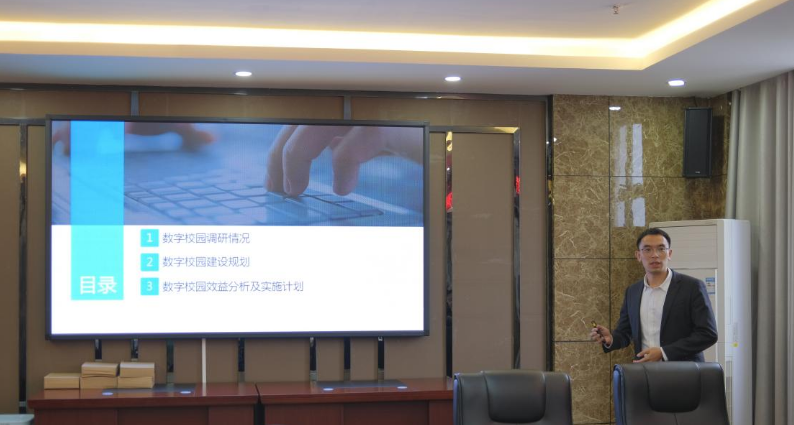 會(huì)上,畢節(jié)市烏蒙云大數(shù)據(jù)產(chǎn)業(yè)發(fā)展有限責(zé)任公司代表、建設(shè)項(xiàng)目組組長(zhǎng)黃歡從學(xué)院數(shù)字校園建設(shè)目標(biāo)、現(xiàn)狀及需求分析、技術(shù)架構(gòu)、保障措施、實(shí)施進(jìn)度安排等方面詳細(xì)匯報(bào)了學(xué)校數(shù)字校園建設(shè)方案的工作計(jì)劃和主要建設(shè)內(nèi)容。