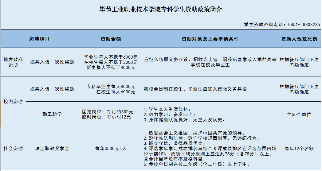 畢節(jié)工業(yè)職業(yè)技術(shù)學(xué)院??茖W(xué)生資助政策簡介